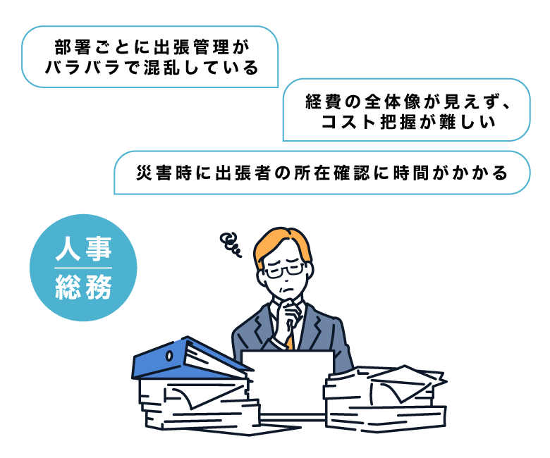 災害やトラブル時に出張者の所在地を即時確認。迅速な安否確認と対応で、危機管理体制を強化します。