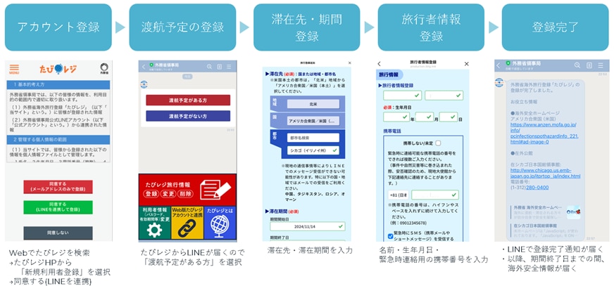 ・外務省が提供する「たびレジ」に登録しておくと、渡航先の安全情報を日本語で受け取ること ができ安心