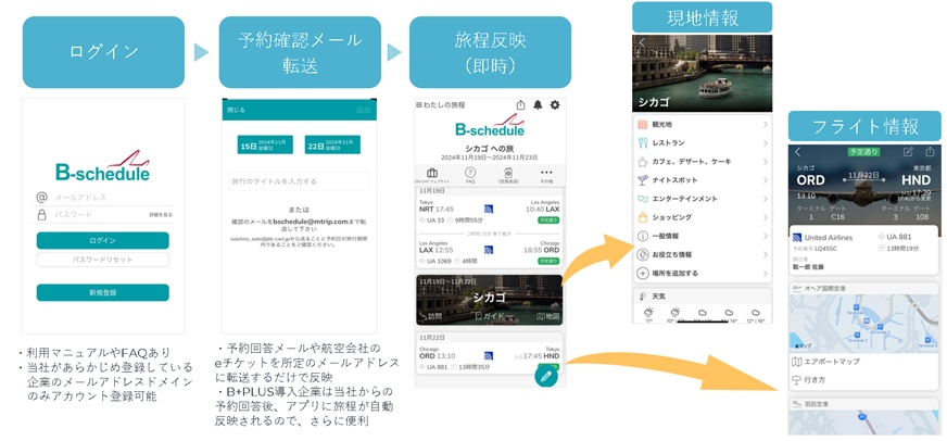 JTB-CWTが開発した「B-schedule」は、出張に必要な情報を一元管理できる便利なアプリです。