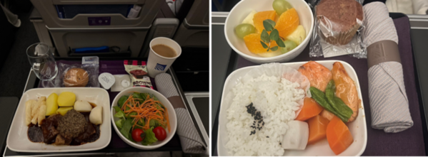 ・ワンランク上の食事:和食・洋食選択可。お皿がアルミではなく陶器で高級感あり
