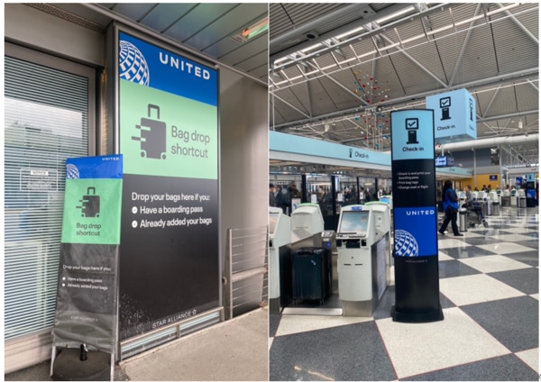 ➁チェックイン・荷物預け:オンラインでチェックインを済ませた場合、空港のBag Drop Shortcutにて手荷物を預けることができます。Boarding Passを提示し荷物を渡すだけなので、10秒ほどで手続きが終わりました!