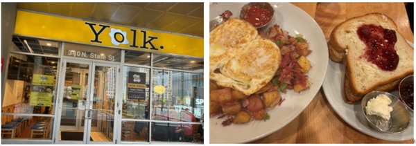 ・Yolk:シカゴで人気のブランチ専門店です。定番の卵料理はもちろん、エッグベネディクト、オムレツ、パンケーキ、フレンチトーストなど、朝からパワーチャージできるメニューが豊富です!