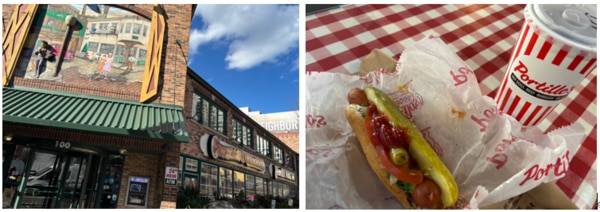 ・Portillio‘s:シカゴで愛される、ローカル感満載のホットドッグチェーン店です。特にシカゴスタイルのホットドッグが人気です(ピクルスの巨大さに驚きました)。この他にも、「イタリアンビーフサンドイッチ」が人気のようです。
