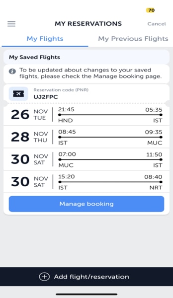 <ターキッシュエアラインズアプリ>