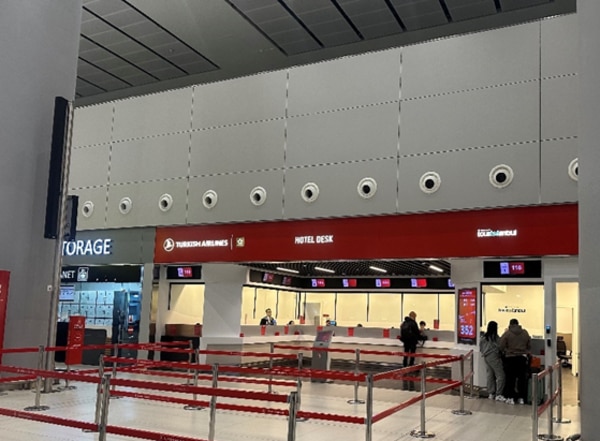 空港のカウンターでチェックイン。該当する Turkish Airlines のカウンターに進み、パスポートを提出して搭乗券を受け取り。手荷物をお持ちの場合は、カウンターで預ける。