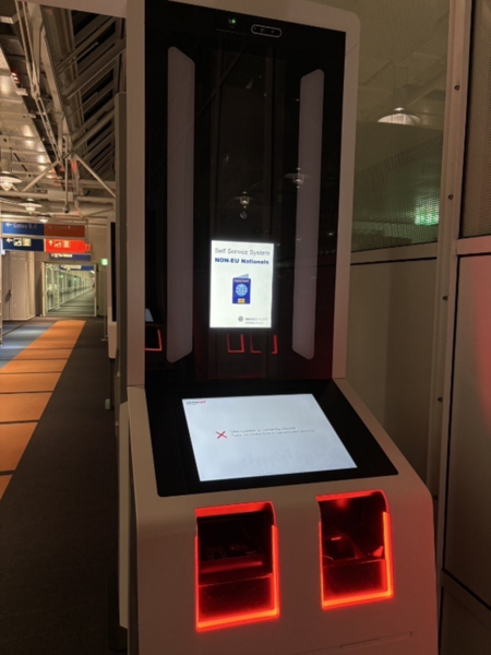 ↓写真のような機械で出国審査が可能にみえる機会もあったが使用不可となっていたので利用な