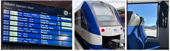 ミュンヘン中央駅からフュッセン駅までの移動時にバイエルン地域鉄道を利用しましたが、車内座席(2等)のシート幅は余裕があり、窓も広いため開放的かつ快適に感じました。実際に車内でパソコン作業をしている方もいましたので、移動中に作業をしたい出張者にとっても便利であると思います。トイレも完備されているので安心です。
