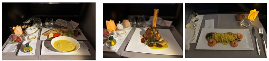ましたが、豪華な食事の提供、食後は客室乗務員によるベッドメイキングのサービスがあり、快適