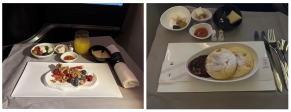 ①季節のフルーツとヨーグルト ②パンケーキ