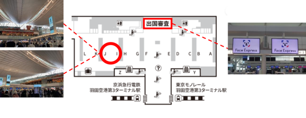 羽田空港第3ターミナル、デルタ航空のチェックインカウンターがあるI/Jに集合し、Face Expressを用いてチェックイン手続きをしました。