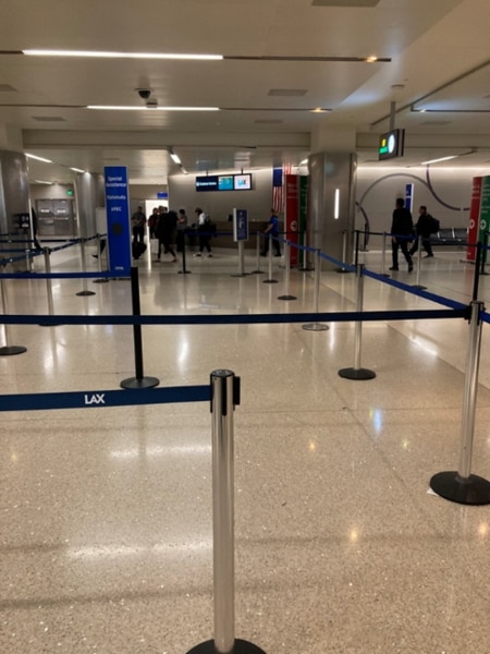 大谷選手が活躍するドジャースの本拠地であるロサンゼルスを経由しました。ロサンゼルス空港に到着後、まず初めに行う必要のある手続きは入国審査です。アメリカへの入国審査には2種類の方法があります。1つ目はみなさんもよく知る長い列に並びながら順番を待つ通常の入国審査です。2つ目はMPC(モバイルパスポートコントロール)アプリを利用した専用レーンに並ぶ入国審査で、短時間でスムーズに入国することができました。