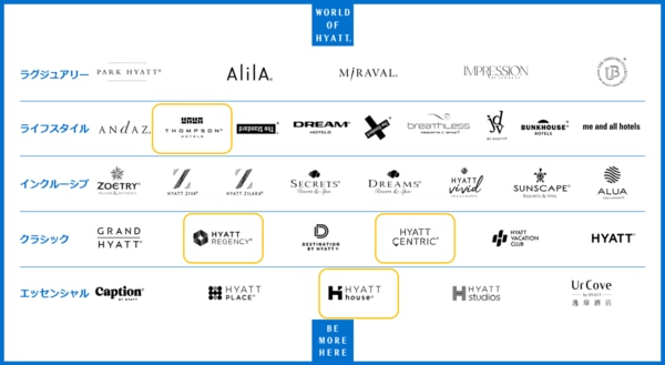 Hyattグループには数多くのブランドがあり、ホテルによってコンセプトや部屋数、料金が異なります。