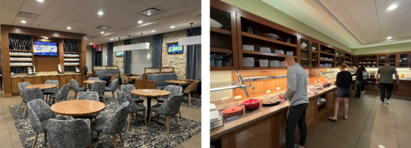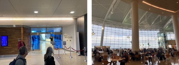 シアトルでもDelta Sky Club(画像左)が運営されており、搭乗ゲートに近いため出発までの待ち時間を快適に過ごすことができます。また、空港中央付近には全面ガラス張りの待合スペースがあり、開放的な空間で出発時刻を待つこともできます。