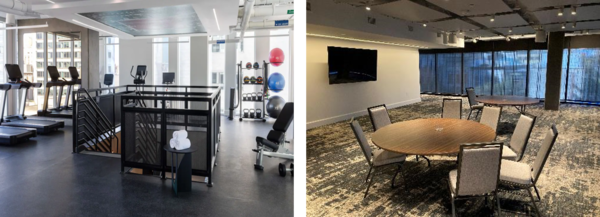 24時間利用可能が可能なジムや温水プール、ウォーターサーバー、会議/イベントスペースは少人数~大規模まで最大500人ほど収容可能な部屋を複数室完備しています。