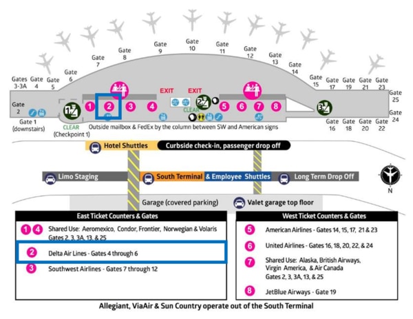 オースティン空港内のデルタ航空のチェックインカウンターは出発ロビーの左側にあります。