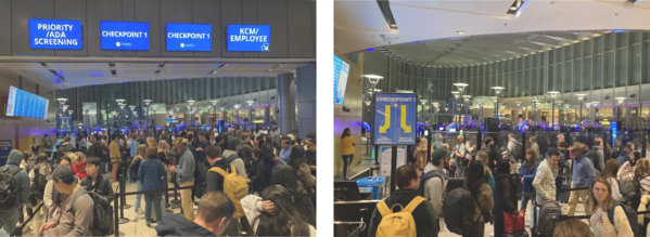 今回は早朝6時の出発であったため、4時30分ごろに保安検査場に向かいましたが、すでに長蛇の列ができていました。アメリカ国内での移動においても出発時刻の2時間前を心掛けることを推奨します。