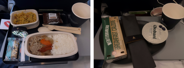 復路はメインキャビンを利用し、羽田空港に到着するまでの間に2回の食事(夕食と朝食)がありました。