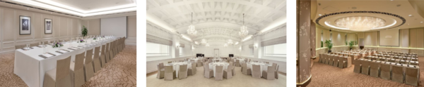 フラートンホテル・シンガポールでは、異なる複数の多目的スペースをご用意しており、さまざまな用途に対応可能です。会場は、10名様から最大約600名様まで収容可能で、ビジネスミーティングから大規模なイベント、パーティー、ウェディングまで幅広いニーズに対応しています。歴史的な建築を活かした空間では、1つの会場内で会議と宴会スペースを分けるなど、お客様の目的に合わせた柔軟なレイアウトが可能です。