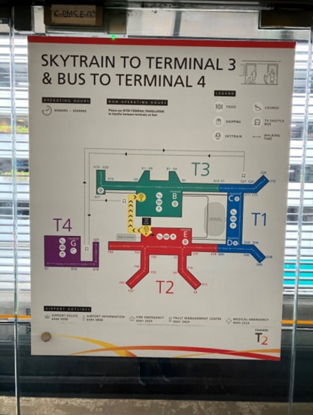 チャンギ空港における各移動手段の乗車場所