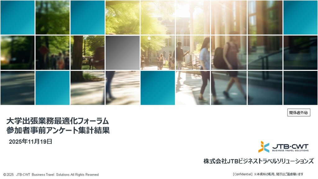 当社は、今後も大学の皆様が直面する旅費管理の課題に対し、ビジネストラベルマネジメント(BTM)の専門企業として、最適なソリューションを提供し続けてまいります。法改正への迅速な対応はもちろんのこと、各大学の実態に合わせた最適な出張管理体制の構築を支援し、業務効率化、ガバナンス強化、そして出張費の最適化を支援してまいります。今回のイベントが、各大学における旅費管理改革推進の具体的な一歩となることを願っております。