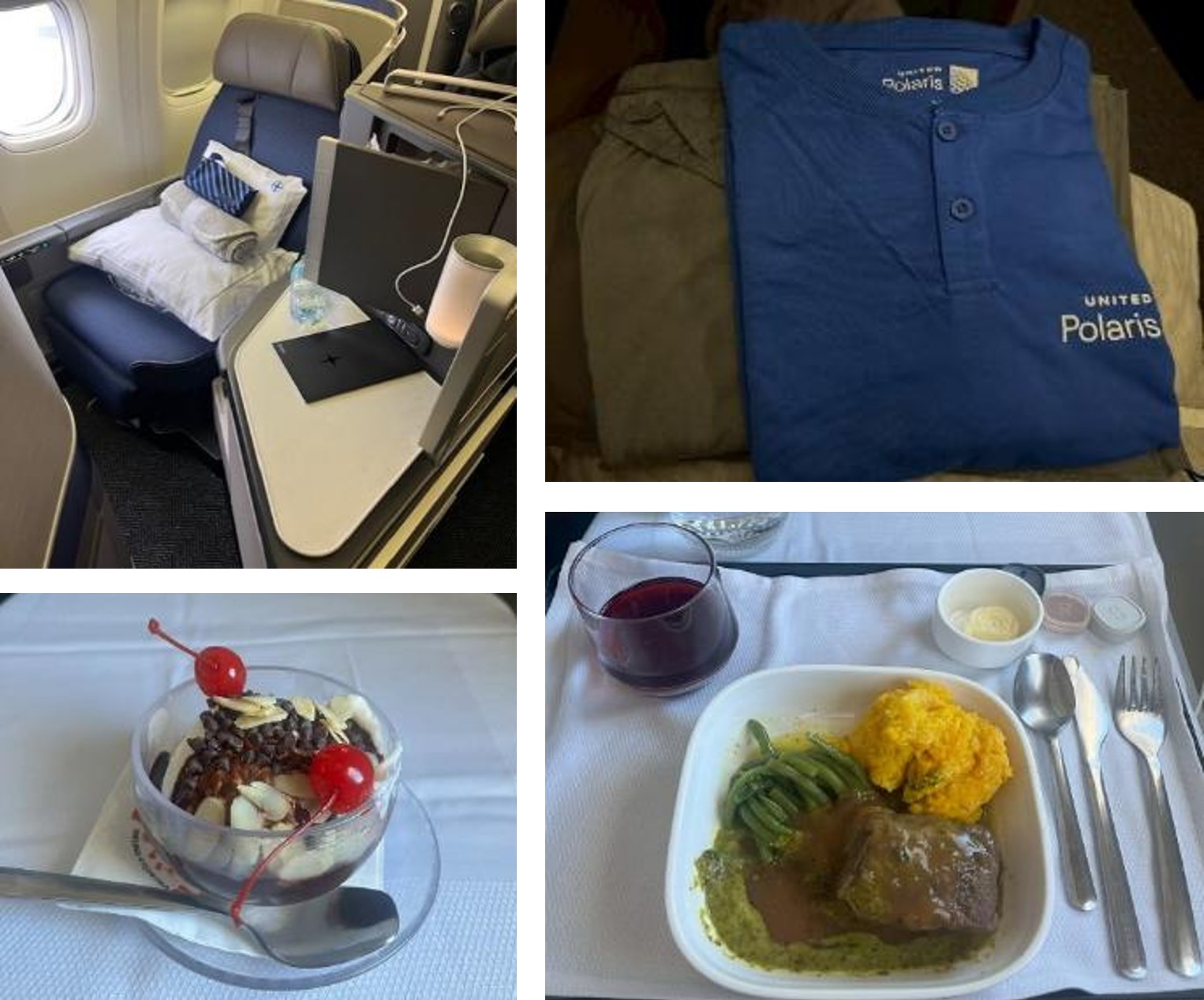 復路はユナイテッド・ポラリス・ビジネスクラスを利用いたしました。 約14時間の長距離フライトでしたが、ゆったりとしたフルフラットシートのおかげで、非常に快適に休息をとることができました。