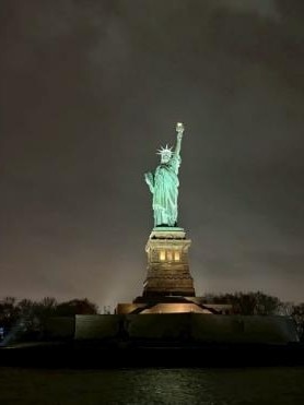 「世界を照らす自由」の正式名称を持ち、アメリカを象徴する存在として世界中の人々に親しまれています。遠くからの眺めでしたが、夜のニューヨーク湾に佇む姿が存在感を感じとても美しかったです。