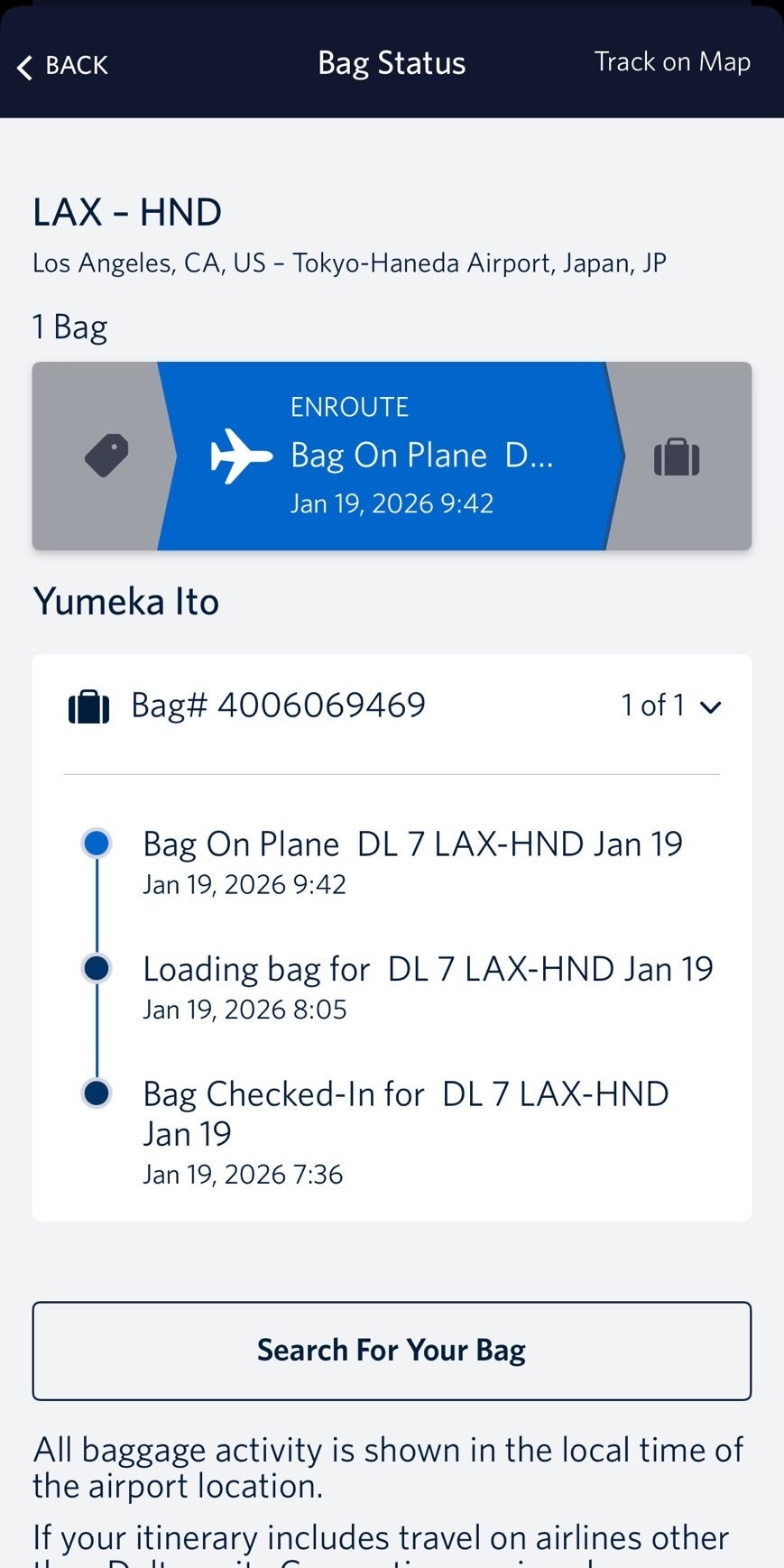 フライトは下記羽田⇔ロサンゼルスのデルタ航空直行便を利用し、